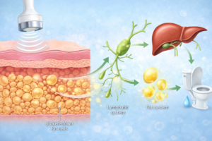 After cavitation, the released fat content enters your lymphatic system. The lymphatic system acts like your body’s drainage network. It transports waste, toxins, and excess fluid away from tissues.